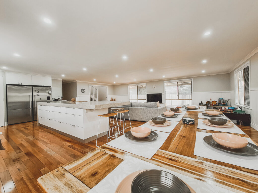 Open-plan living, natural light, large table setting, huge double fridges, a dishwasher and a big sofa – this home is made for larger families or multiple families wanting to holiday together in the one home. You’ll even find a little play area for the little ones.